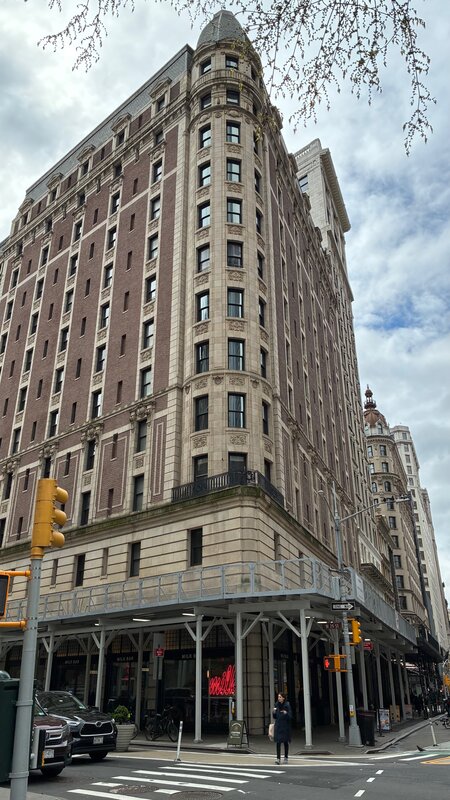 The Ace Hotel (20 W 29th St) now occupies what was once the Hotel Breslin, built in 1904. Part of the original “Great White Way,” it was designed by architect Clinton & Russell, and is still a registered landmark. It’s a beautiful blend of preserved old-world detail and hipster reimagining. Here’s a great short write-up on the building’s origins, and another with some more up to date details.