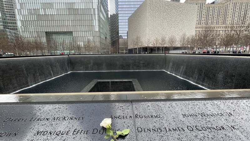 There’s something profound in the way the water disappears into those central voids, endlessly cycling — as if the city is still trying to process what happened, still pouring its grief somewhere.